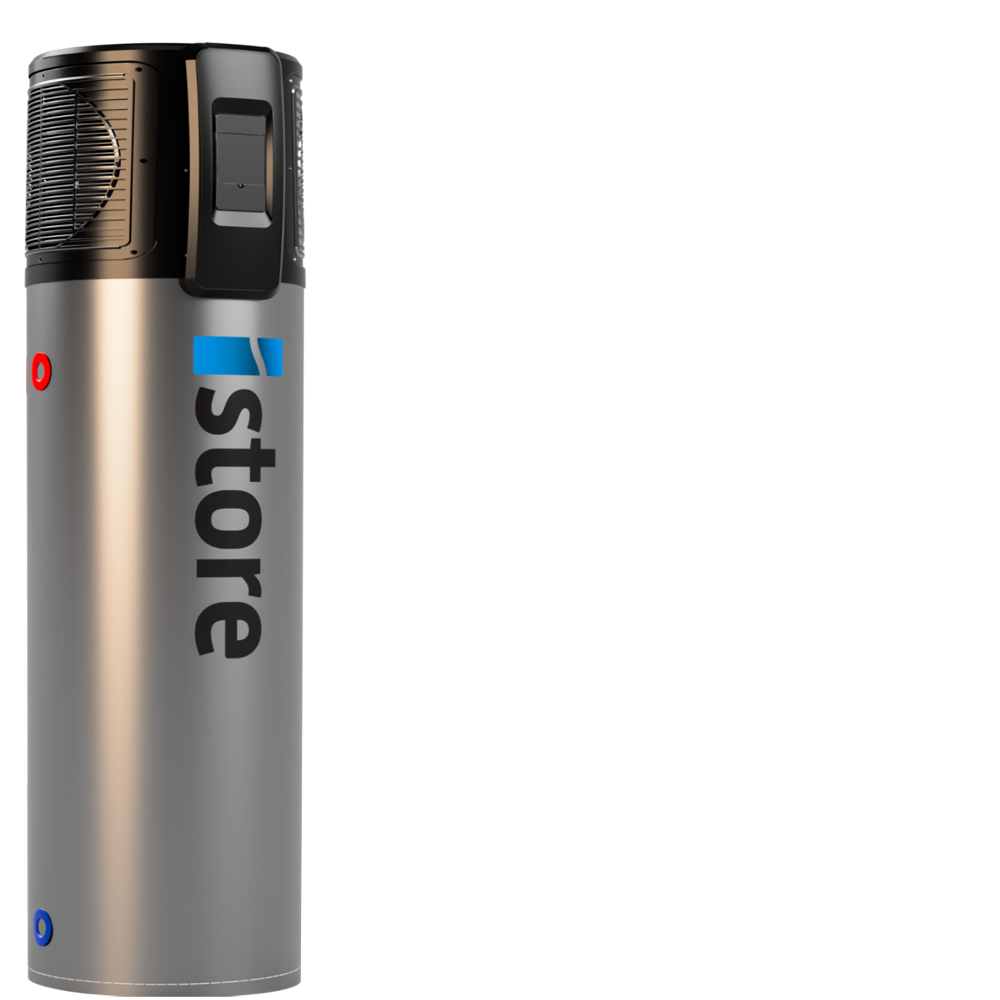 The iStore 180L is an efficient and straightforward system ideal for smaller households. Built with durability in mind and supported by a large touchscreen controller, it delivers reliable hot water with strong running efficiency. It’s tall and slim design has been designed with flats and units in mind, achieving a distinctly small foot print for an all-in-one heat pump.